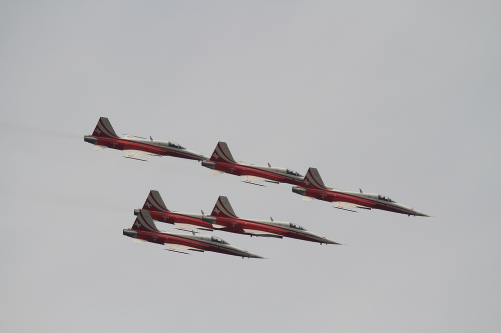 Es fühlte sich so gut an, und ich drehte mich um, um zu sehen ob die anderen das Gleiche fühlten. Ich war aber der einzige, der nur halbwegs tanzte. Die meisten wippten zwar mit dem Kopf oder mit dem Fuß, und sie grinsten durchweg, aber es hatte sie offensichtlich nicht so berührt wie mich. Das war dann schon ganz schöner Abturner. Eine Frau schräg hinter mir, der wohl kalt war, – sie hatte ihren Regenmantel an – war mir vorhin schon aufgefallen, weil sie süß war. Sie hielt sich mit schiefem Mund an ihrem Staro fest und bewegte ihren weiß getupften Rock im Rhythmus vor und zurück und starrte gebannt auf die Videos, die an die Wand gestrahlt wurden. Ich nahm das zum Anlass, nicht weiter abgeturnt zu sein, nahm darum noch nen Zug von meiner Pfeife und konzentrierte mich auf die Videos. Es waren Bilder von F-16 Düsenjägern, die ganz dicht über der Oberfläche dahinjagten. Ich finde Düsenjäger eher ungut, weil die i.d.R. Leute bombardieren und zerfetzen, und ich finde ja immer, man sollte doch eher Frieden auf Erden haben und mehr Liebe und Bäume und Tanzklubs, als so Scheißdüsenjäger. Aber die Bilder waren schon krass! Mir ist nicht klar warum, aber ich spürte diese unglaubliche Energie und Eleganz, mit der die Dinger dahinjagten.